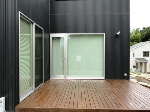 一階のウッドデッキはリビングに続く第二の